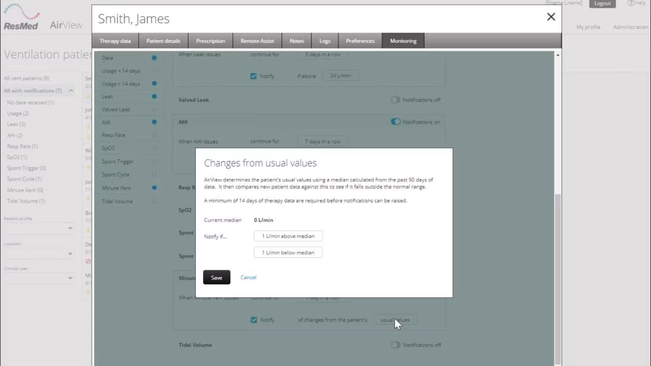 *The interactive reporting feature is included in Advanced and Expert packages. It is available on Resmed ventilation devices only.