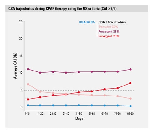 In a cutting-edge analysis, real-world, de-identified data were used to characterise central sleep apnoea (CSA) during continuous positive airway pressure (CPAP) therapy of US telemonitored patients. The analysis was able to identify 3 categories of CSA during CPAP therapy, all of which negatively affected CPAP therapy compliance and increased therapy termination risk.1
